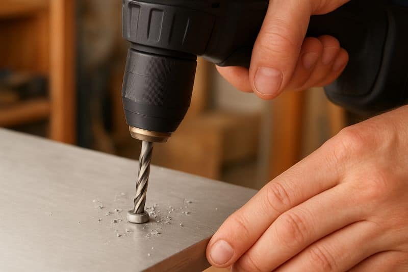Tenha martelo e punção para iniciar o furo e use EPIs (luvas e óculos).