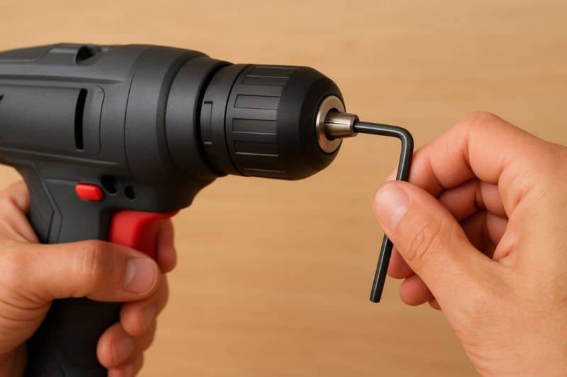 Troque o mandril com a furadeira desconectada da energia e a carcaça aberta para melhor acesso.