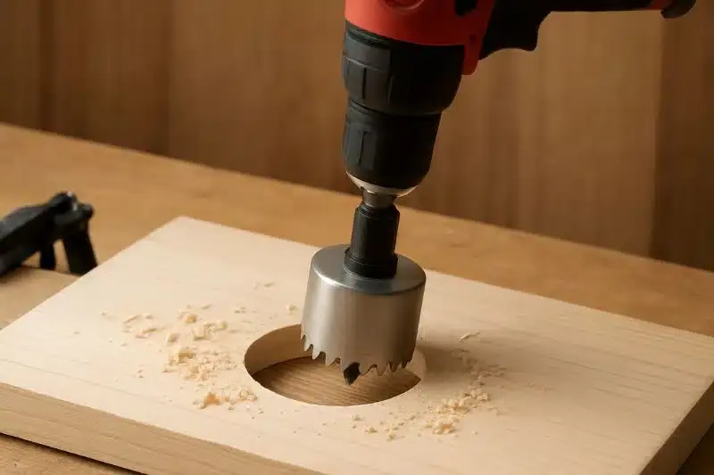 Por fim, lembre-se de que não deve se forçar a serra copo; permita que ela execute o corte de maneira natural, o que garantirá uma furação limpa e precisa.