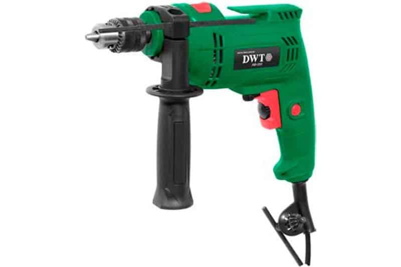 Furadeira de impacto 1/2” DWT FID-710N: 710W de potência, mandril de 1/2”, peso de 2 kg, velocidade variável de 0–2.800 rpm e até 44.800 ipm.