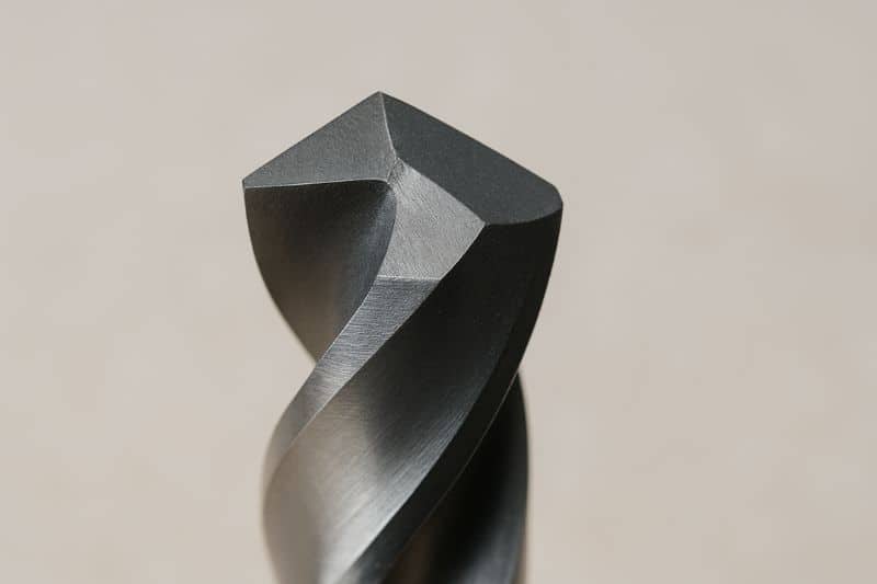 A ponta da broca de vídea, geralmente em metal duro (carbeto de tungstênio), confere alta dureza e resistência ao calor e à pressão, superando o aço comum.